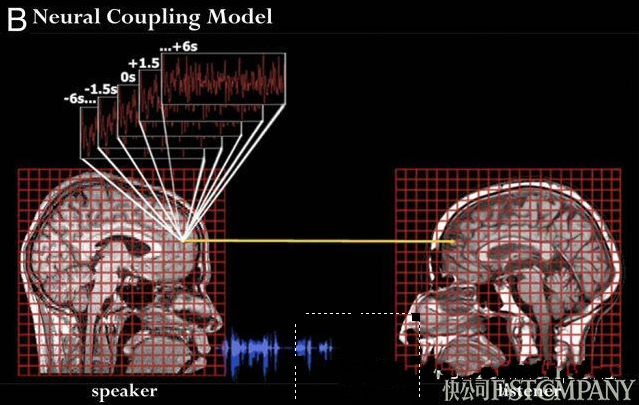 实际上讲故事是激活我们大脑最有效的方式。当别人听你的故事时,你可以带领他们去感受你在某种情境下的某种情感。下面的神经耦合模型描述了这一点: