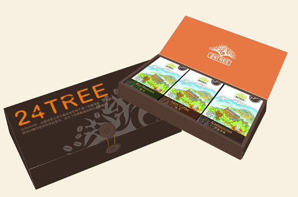 品深设计运用美学法则,设计兼具实用价值和美感效果的包装形体,直观的展现商品的特色,如品深设计为二十四树咖啡设计的盒装、袋装、杯装的造型,可以让消费者直观的了解商品的特性,同时充满云南地方特色的插图活灵活现,让消费者对产品产生亲切感,引发艺术联想,易勾起强烈的购买欲。总之,在品深设计看来,包装的造型和材料都要符合人们的社会心理,贴切地表现出商品的特征,但不能让消费者感觉呆板,乏味,要赋予包装旺盛的生命力,自己能开口说话。